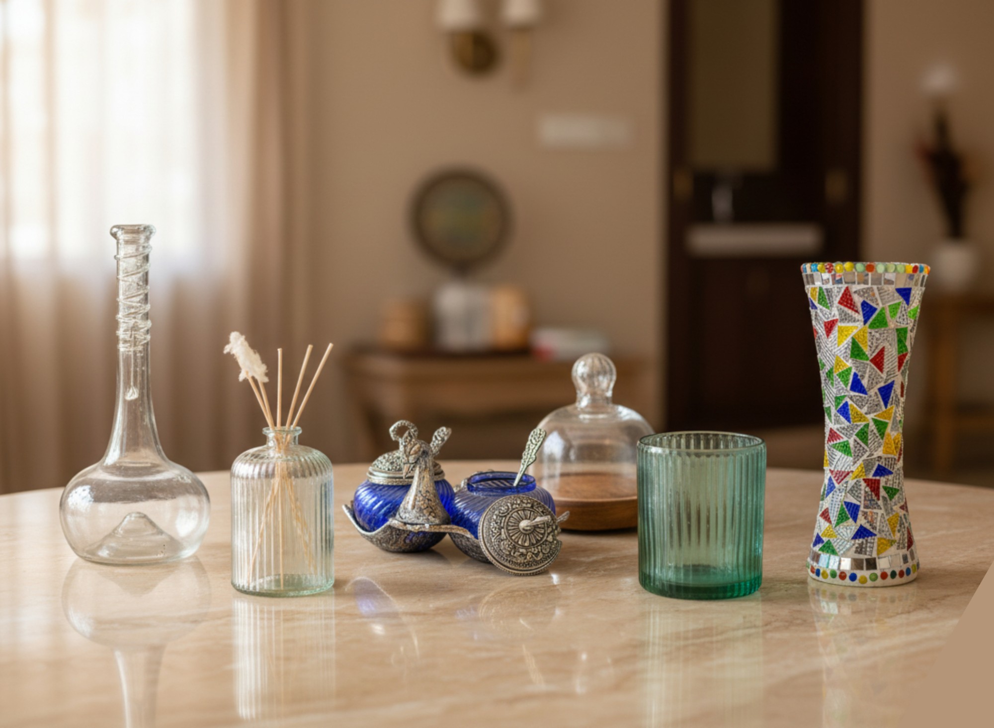 With decades of experience, we design and manufacture products using diverse materials, from fine glass and brass to mixed-media decor, maintaining perfect harmony in every piece.